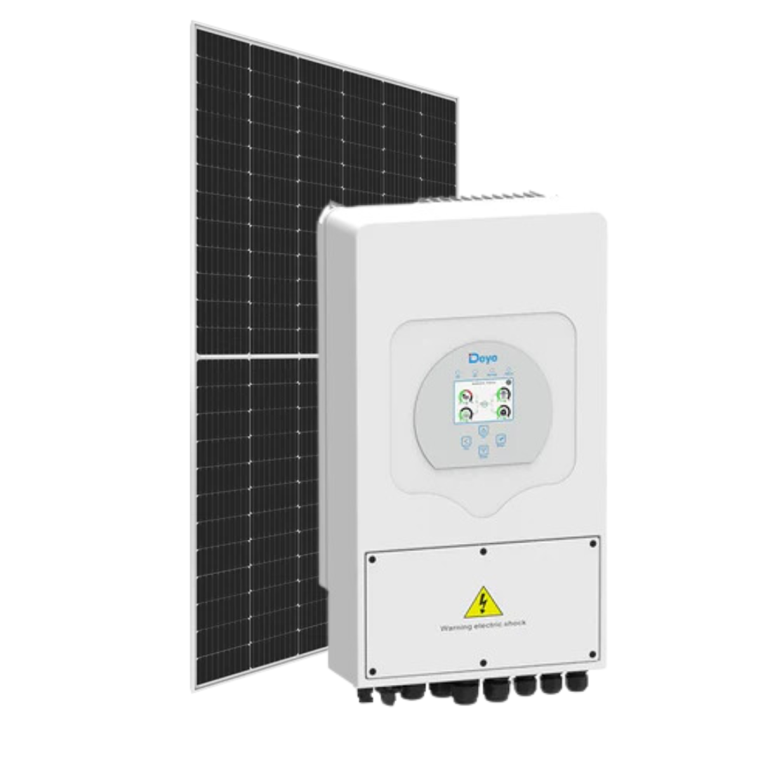 - Deye 5kW Solar Inverter: The Deye Solar Inverter is a high-performance, grid-tied inverter that efficiently converts the DC electricity generated by your solar panels into usable AC power. With a 5kW capacity, it’s suitable for various energy needs and can handle multiple appliances simultaneously.